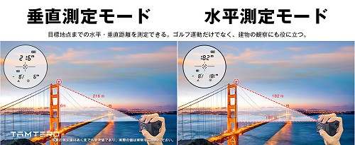 ターゲットまでの直線距離(斜め)、垂直距離(高さ) - 水平測定モード