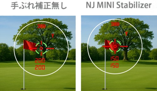 その点、NJ MINI Stabilizer OLEDは1,000ヤードありますので、300ヤードヒッターの方でも安心して使うことができます。